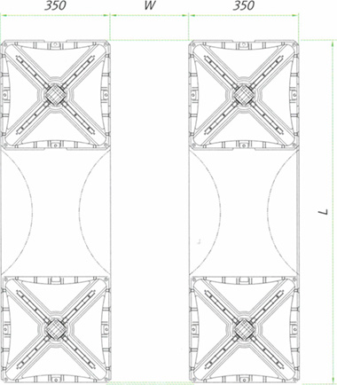 항목 단위 규격 외형크기 mm 350 x L x 90 제품중량 Kg 32(L=1100기준) 최대변위량 mm +-150 탑재하중 Kg 2000 / 1대